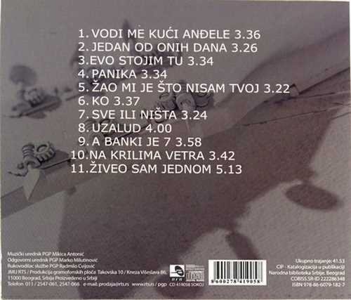 01.Vodi me kuci ancele 02.Jedan od onih dana 03.Evo stojim tu 04.Panika 05.Žao mi je što nisam tvoj 06.Ko 07.Sve ili ništa 08.Uzalud 09.A banki je 7 10.Na krilima vetra 11.Živeo sam jednom
